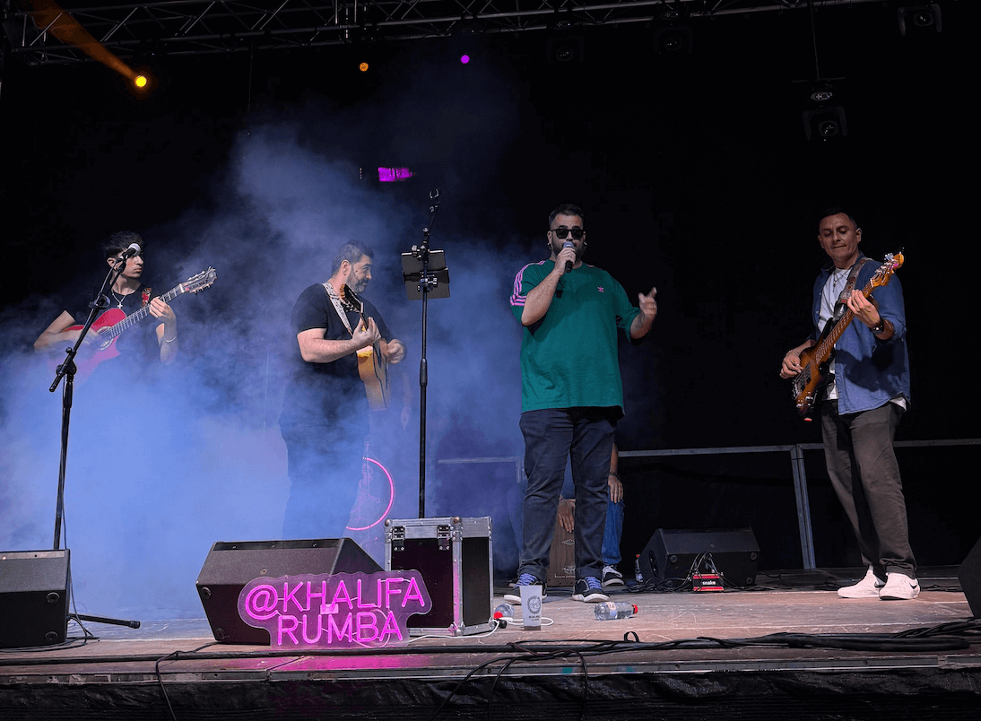 Khalifa Rumba és una banda de rumba flamenca i fusió que irradia energia i alegria en cada actuació, nascuda de la complicitat d’amics que van transformar la seva afició en una autèntica passió musical.