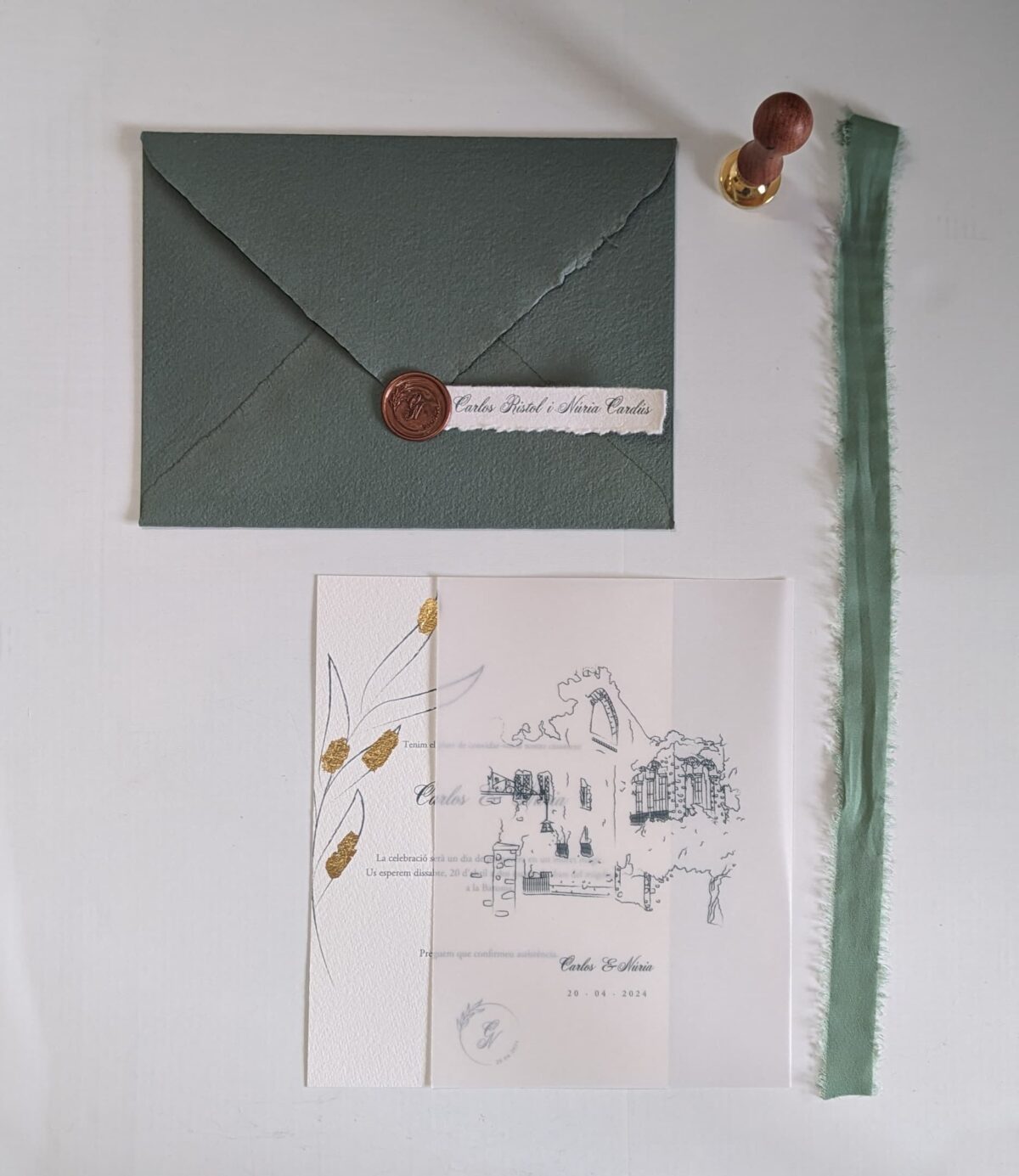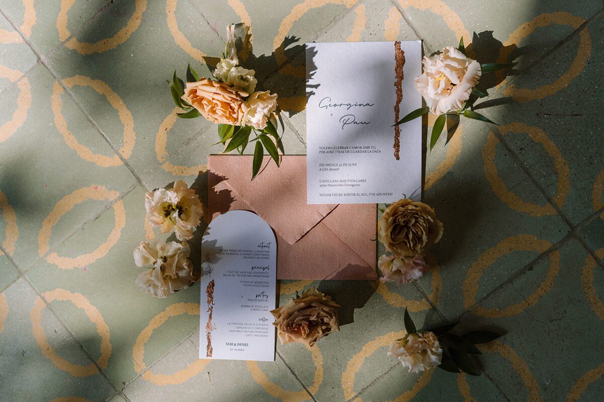 Com a dissenyadora especialitzada en bodes arreu de Catalunya, creo invitacions de boda originals, en paper de qualitat, acompanyades de sobres i segells de lacre o amb pa d’or, ideals per a un toc sofisticat i artesanal.