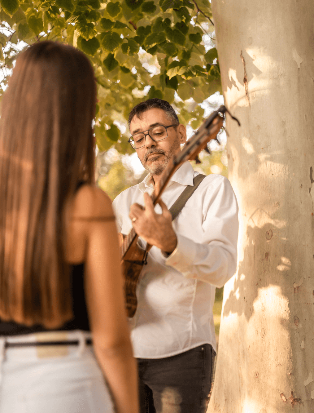Interpreten versions en anglès, català i castellà, triades conjuntament amb la parella perquè cada cançó tingui un sentit especial. La seva manera de treballar és propera i personal: escolten la vostra història, adapten el repertori i apareixen al casament com aquells amics músics que aporten naturalitat i sensibilitat.